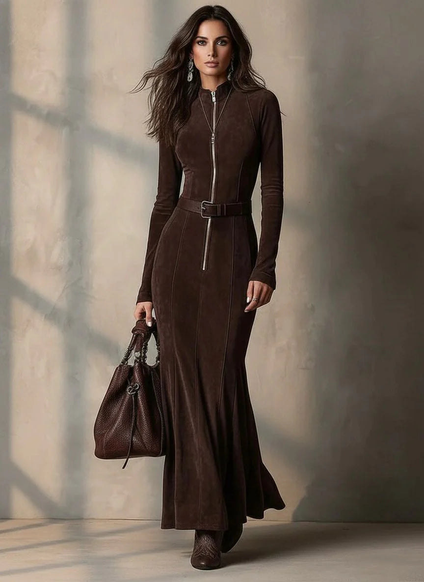 Noor | Zipped Suede Maxi Dress